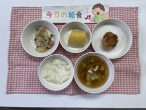 ごはん、クルクルランドとんかつ、ジャーマンポテト、