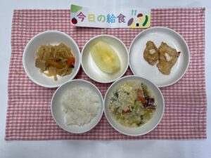 ごはん、チキン南蛮風、切干大根の煮付け、豆まめ味噌汁